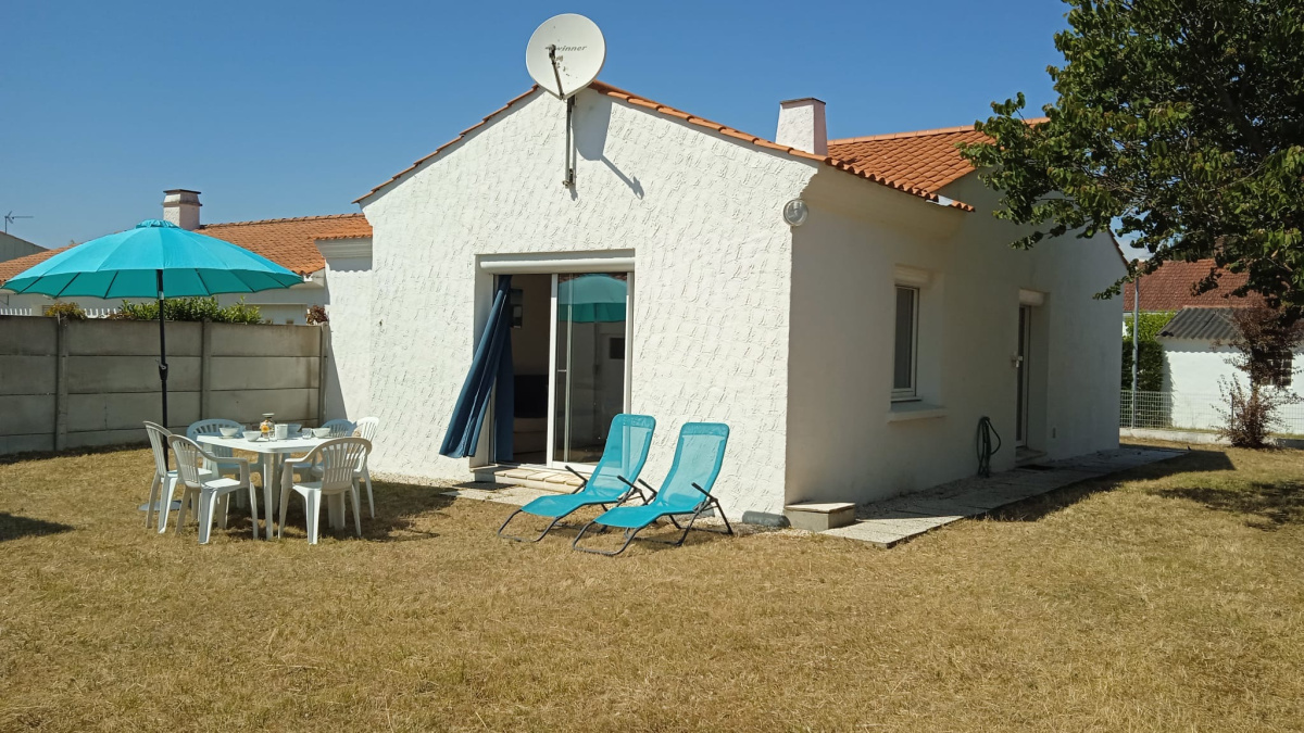 A Saint Jean de Monts, proche forêt et plage et à deux pas du centre ville, au calme d'un chemin maison très joliment décorée et récemment rénovée offrant un spacieux séjour avec canapé convertible pour couchage double, une cuisine équipée et aménagée ouverte, 1 chambre avec 1 lit double, 1 chambre avec 2 lits simples pouvant être rapprochés pour 1 couchage double, une salle d'eau, WC séparé. Jardin non clos, bien orienté sans vis à vis. Possibilité de garer un véhicule dans l'allée au sein de la propriété. Pistes cyclables à proximité. Animaux acceptés.
