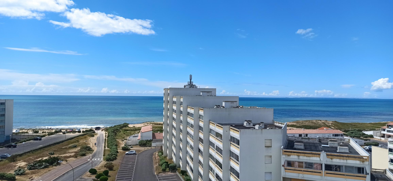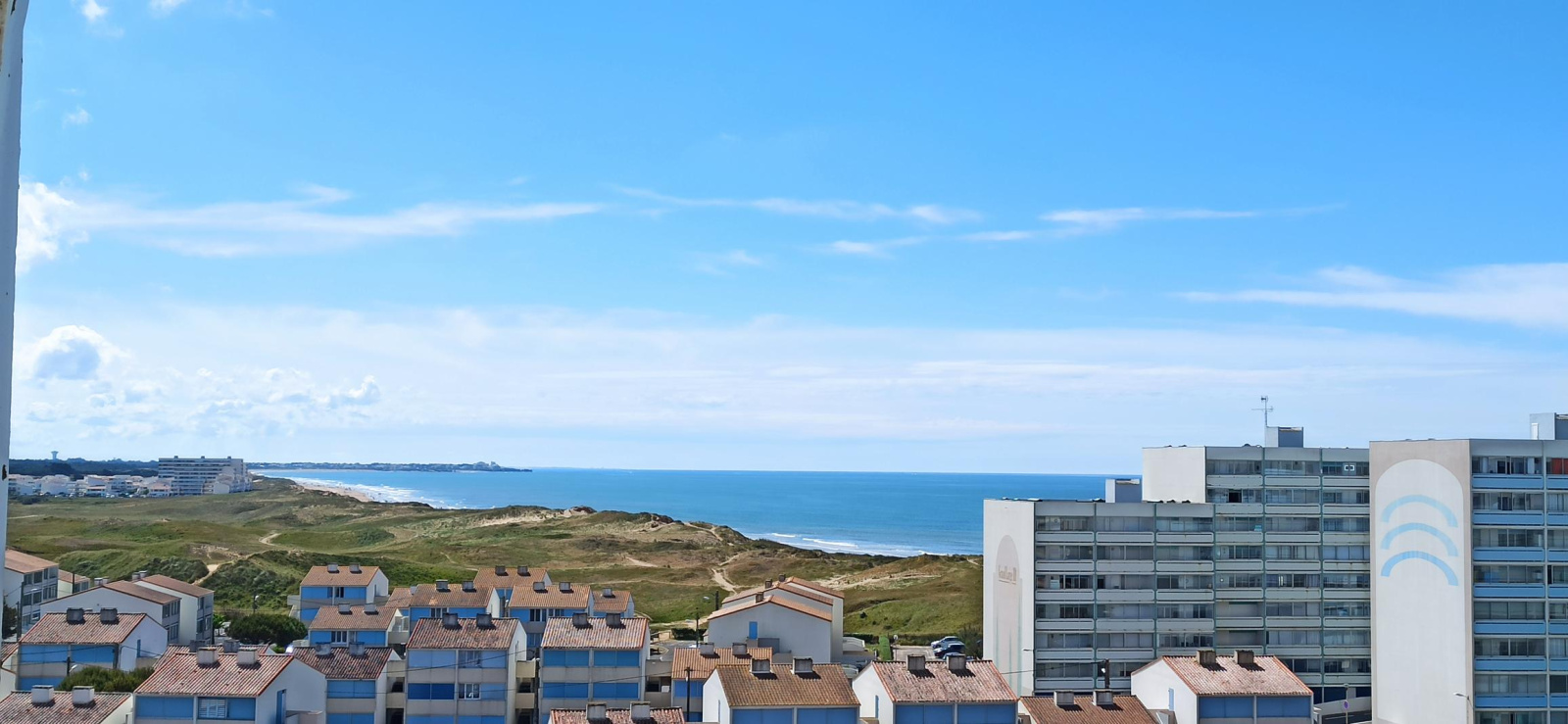 Dans le prolongement de St Jean de Monts et de ses belles plages de sable fin, village Les Océanes, quartier balnéaire et familial, appartement situé au 7 ème étage d'une résidende avec ascenseur offrant une entrée, un séjour avec canapé convertible type clic clac (couchage 2 personnes), une kitchenette, une chambre avec un lit 2 personnes (140), une salle de bain, un balcon fermé avec vue mer. Commerces d'été à 400 m, plage à 30m. Forêt et pistes cyclable à proximité.
