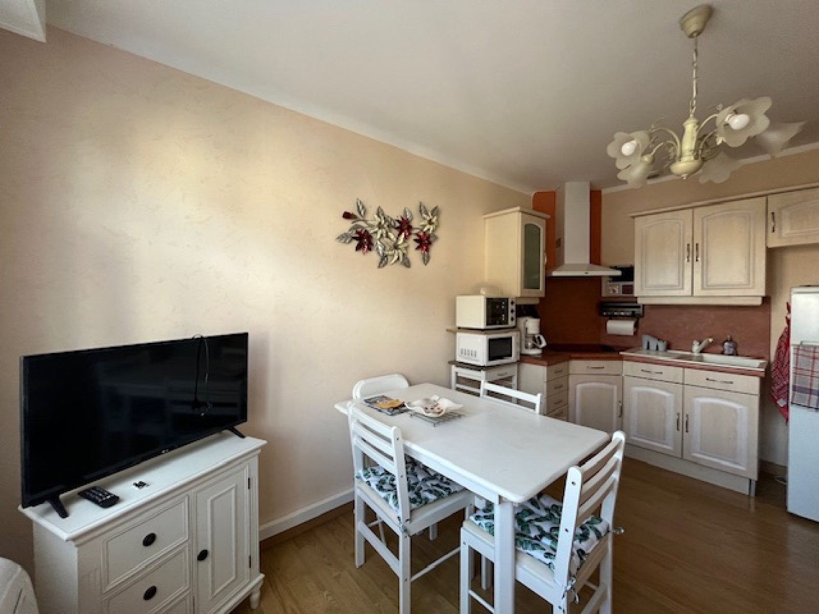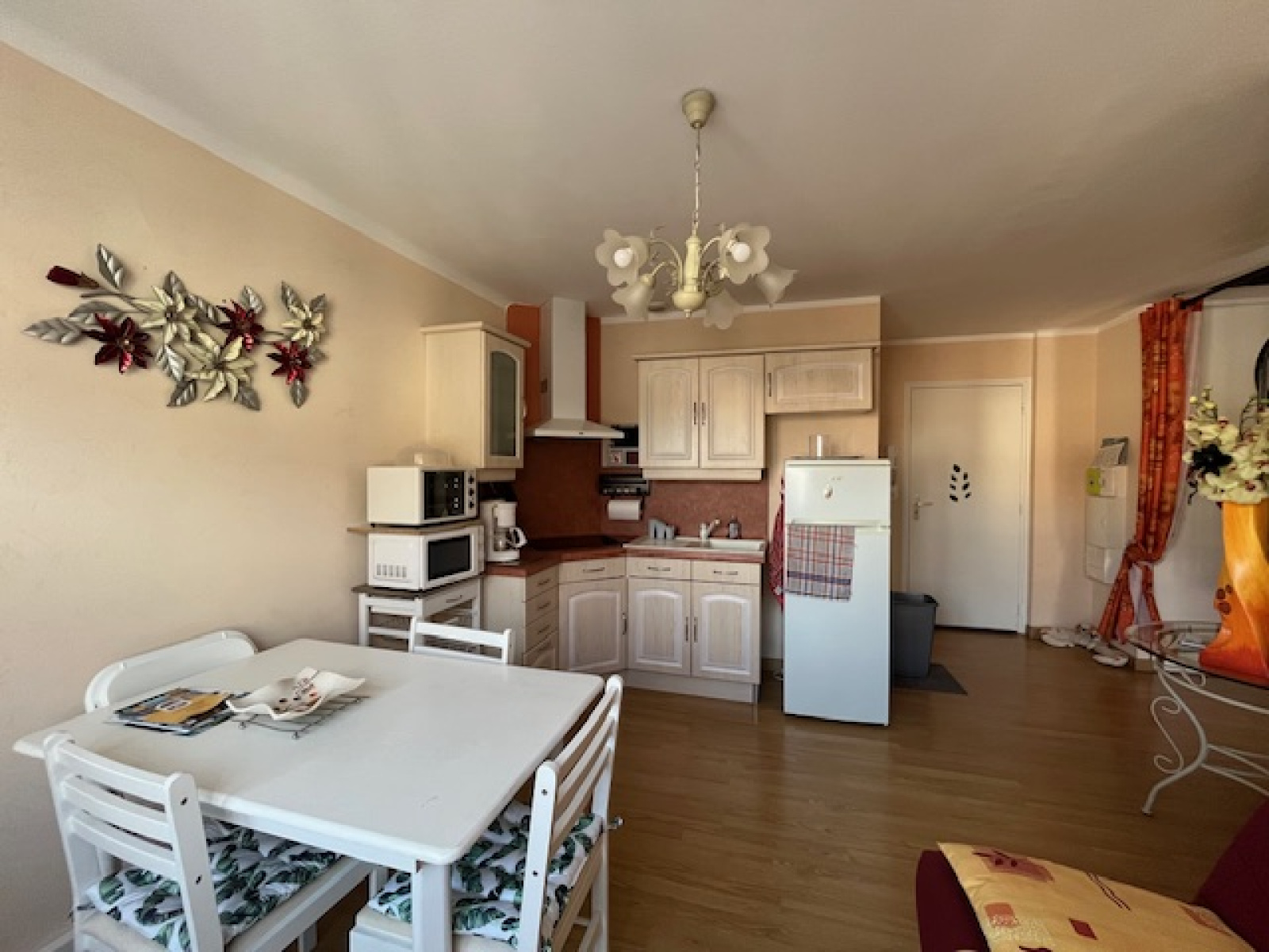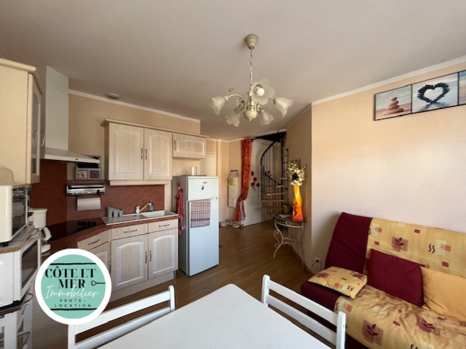 L'agence Côte et Mer vous présente : Au coeur du bourg et à proximité de tous commerces : venez découvrir ce bel appartement de type II avec mezzanine d’environ de 38.91 m² . Situé au premier étage d’une petite résidence il comprend : cuisine aménagée et équipée ouverte sur séjour-salon, coin nuit, mezzanine. Idéal en pied à terre ou investissement locatif. Copropriété de trois lots. Pas de procédure en cours.