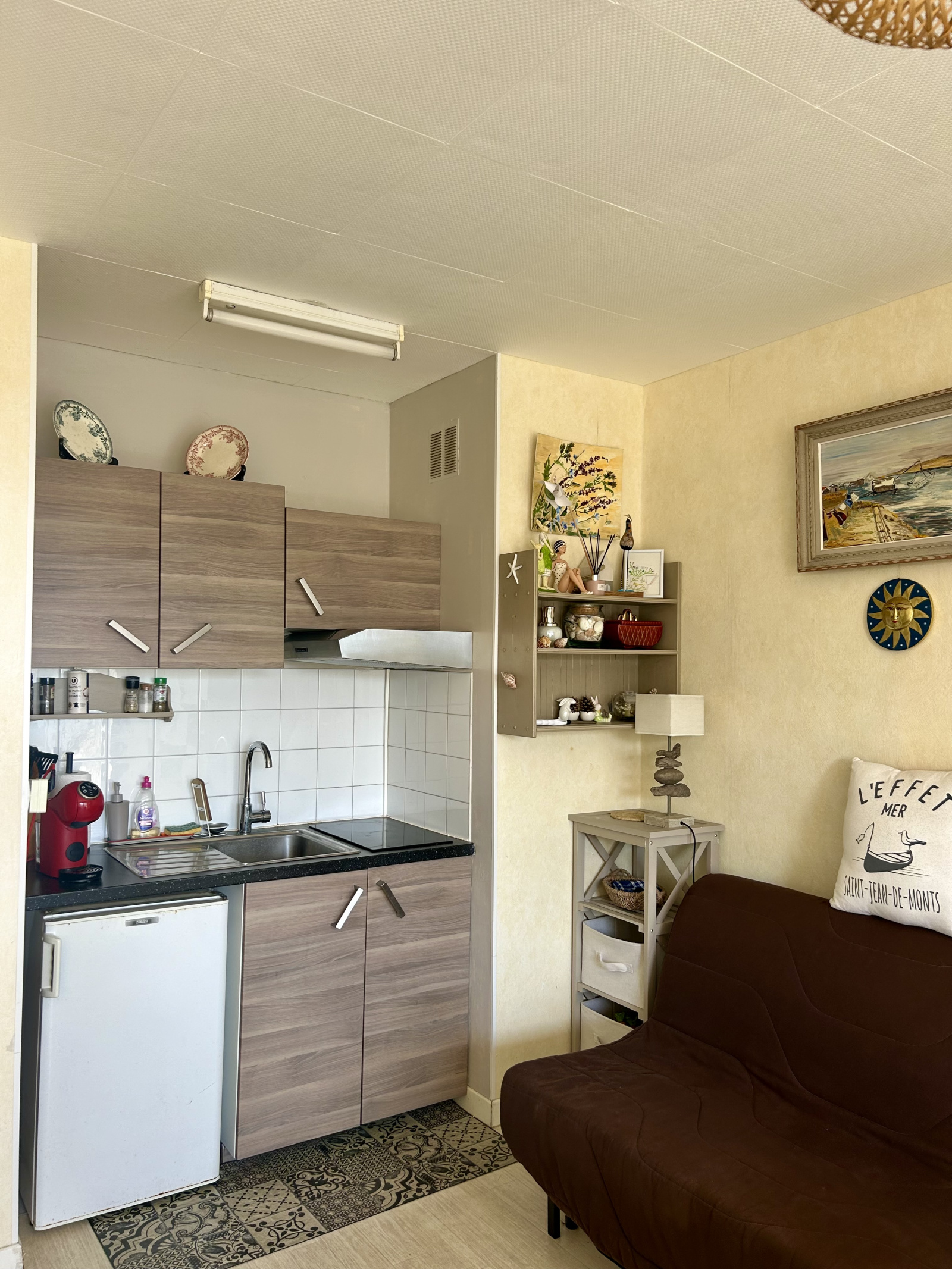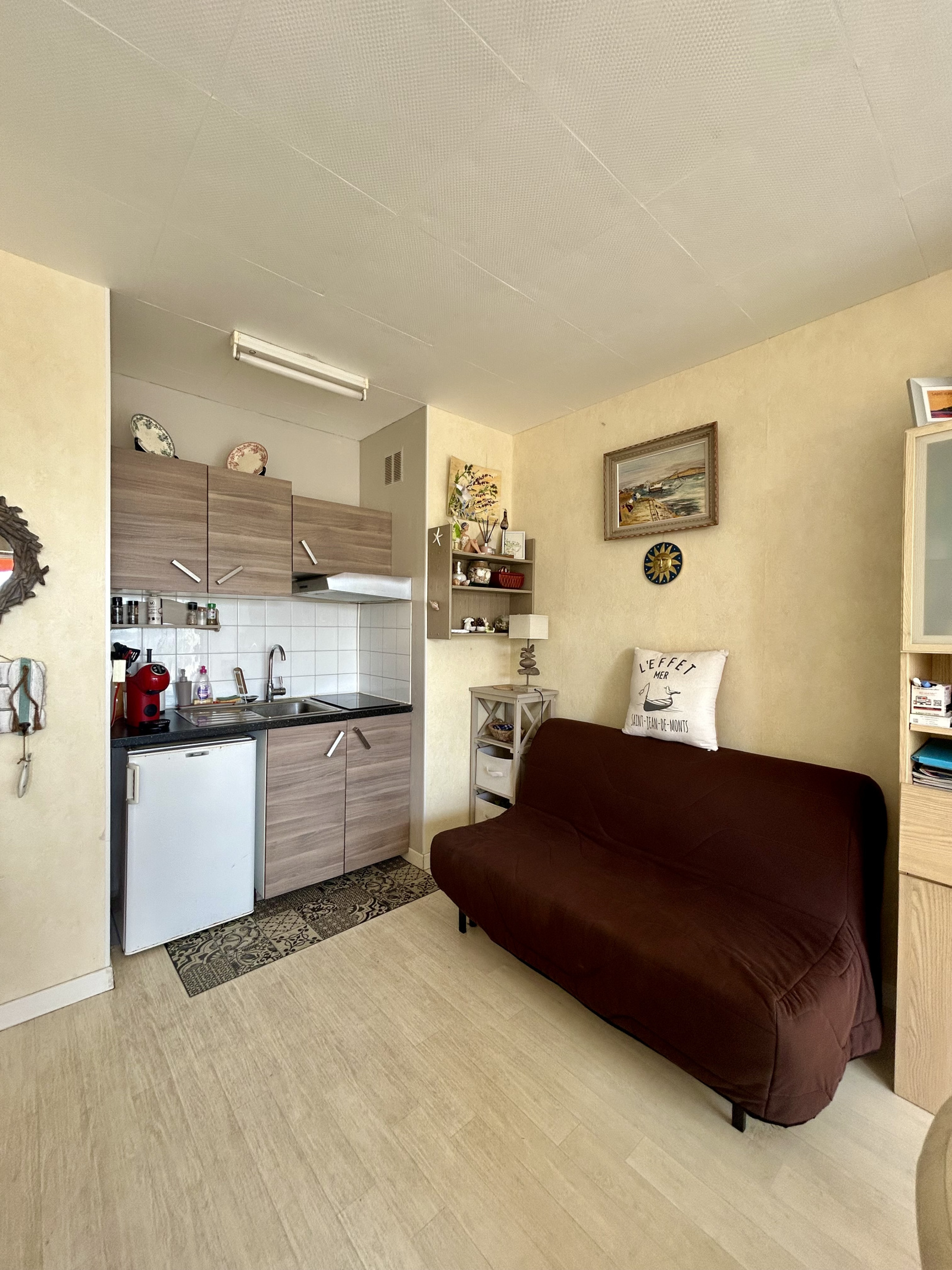L'agence Côte et Mer vous propose : charmant studio d' environ 25 m² situé au 1er étage d'une petite résidence sur l'Esplanade de la mer face à la longue plage de sable fin de St Jean de Monts, proche commerces et activités (golf, tennis, sports nautiques, thalassothérapie ...). Il se compose d'une entrée, d'un espace de vie lumineux, d'une kitchenette équipée et d'une salle de bains. Il offre également un balcon avec vue sur la mer.