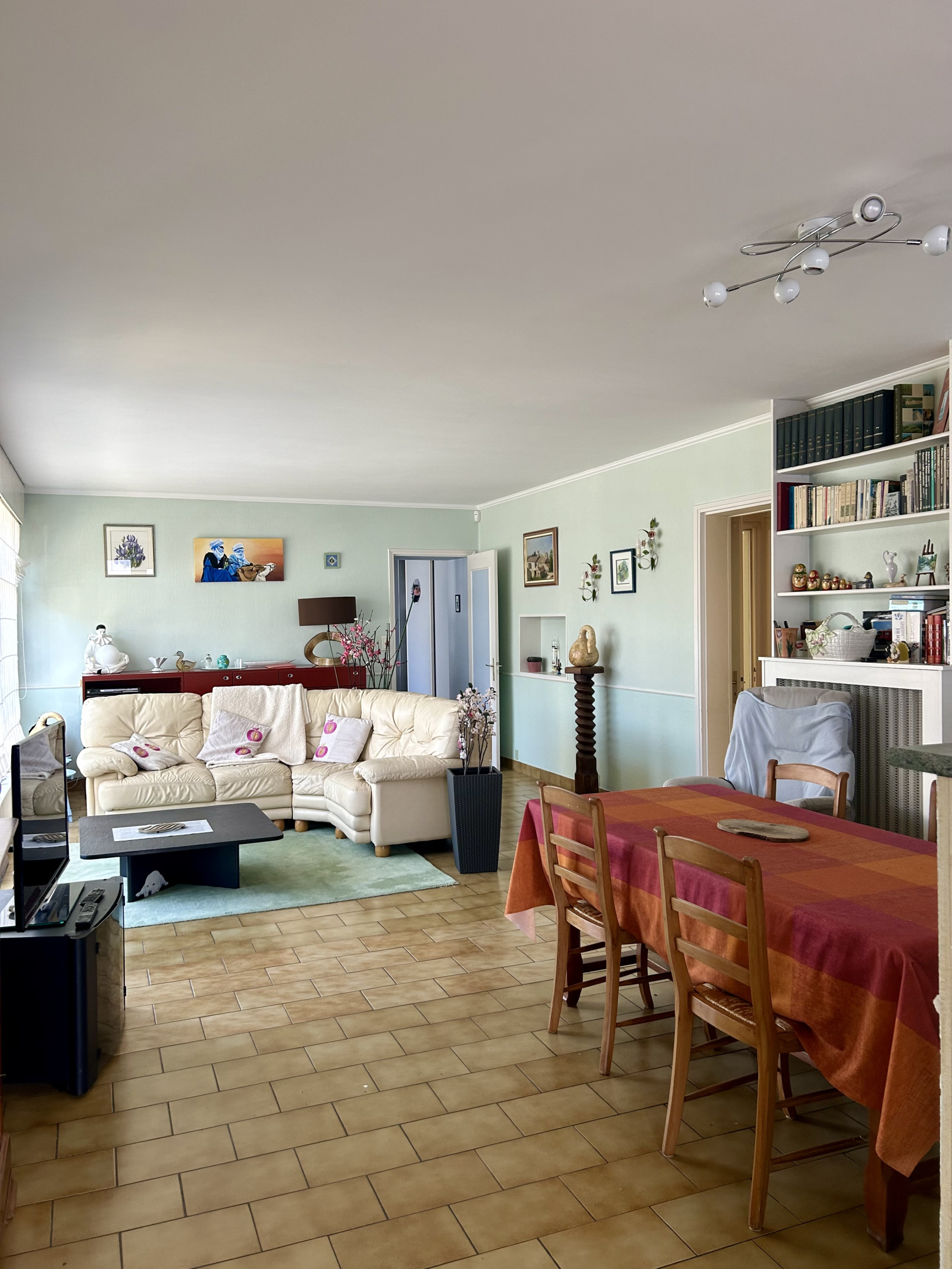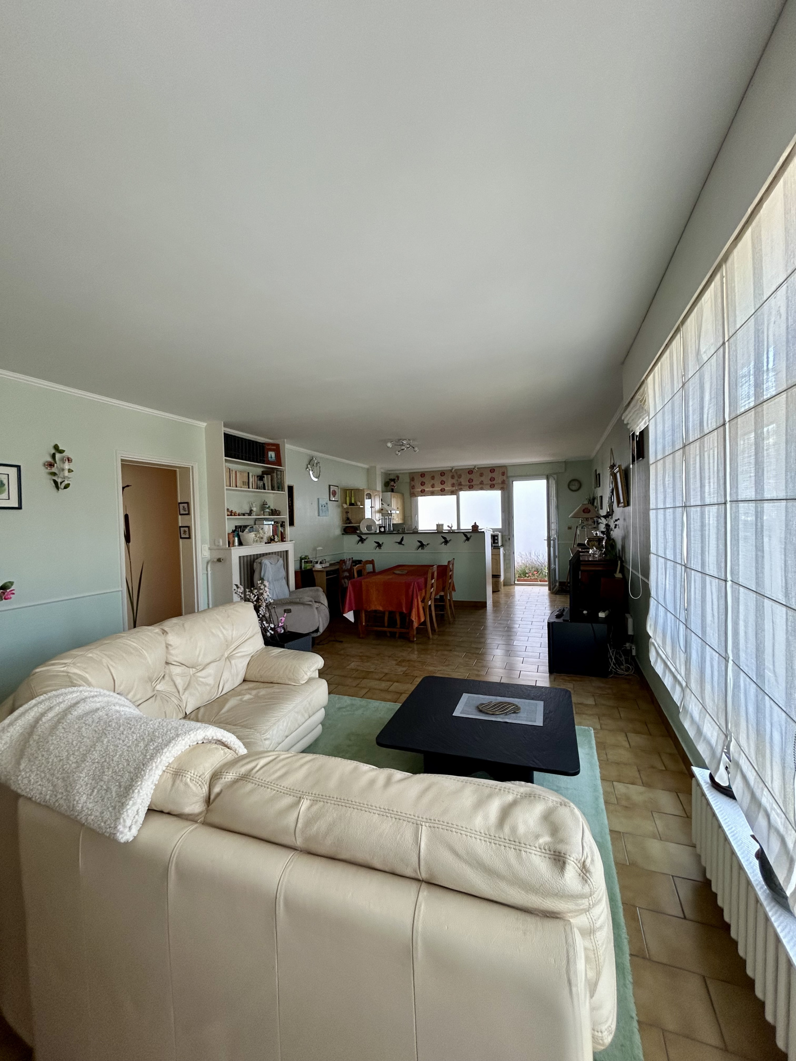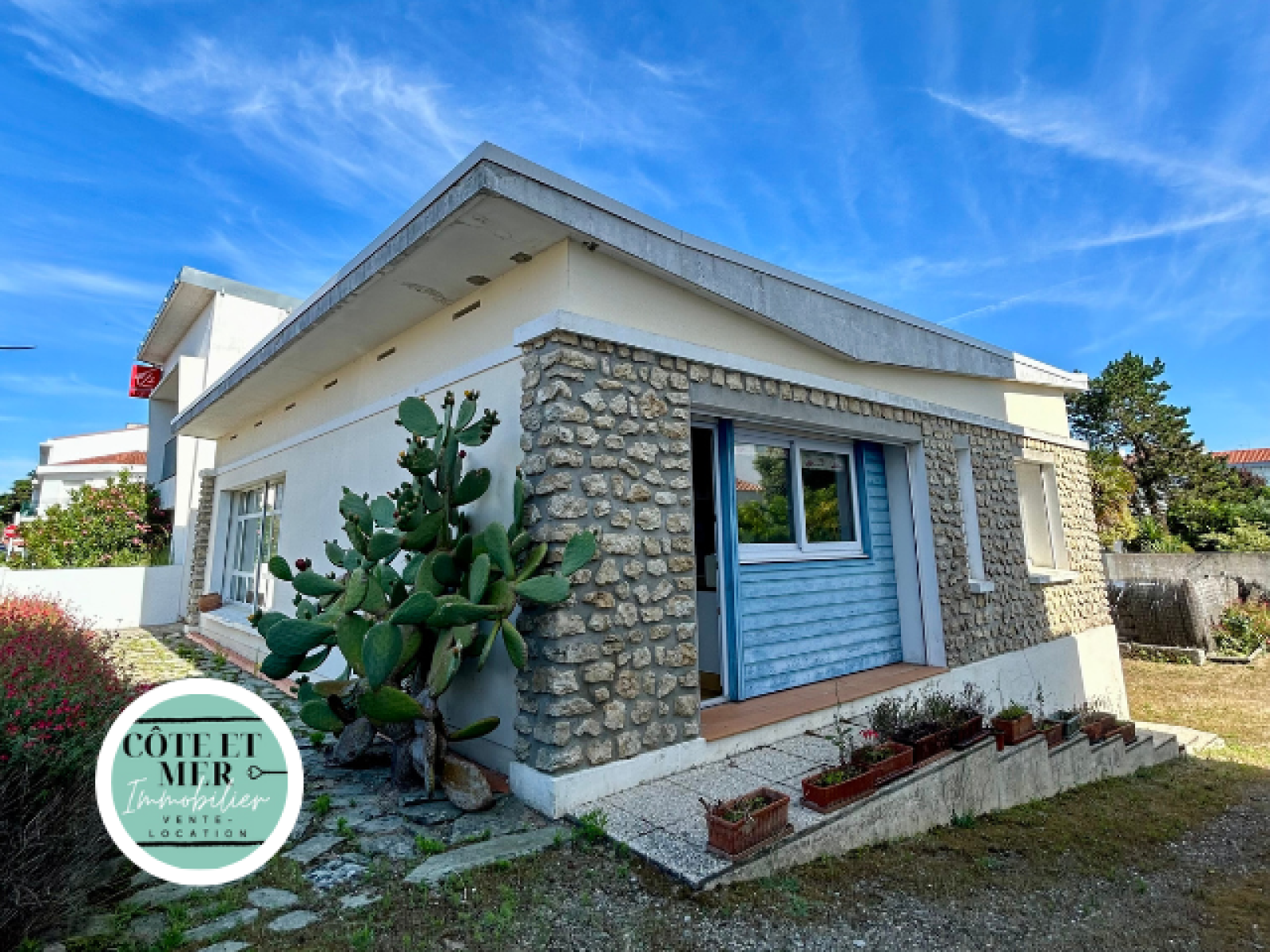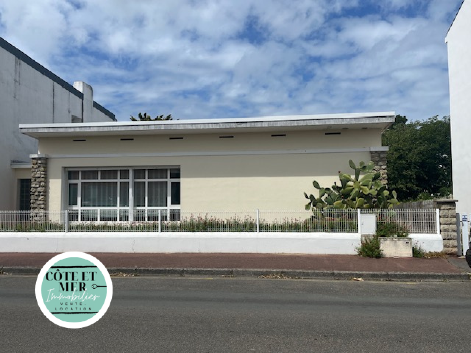 L'agence COTE ET MER vous présente : au coeur du centre ville de St Jean de Monts, à 100 m des commerces de proximité, maison de plain pied d'environ 105 m² comprenant : entrée, séjour salon avec cuisine de 46 m², couloir désservant 2 chambres,wc, arrière cuisine et salle d'eau.