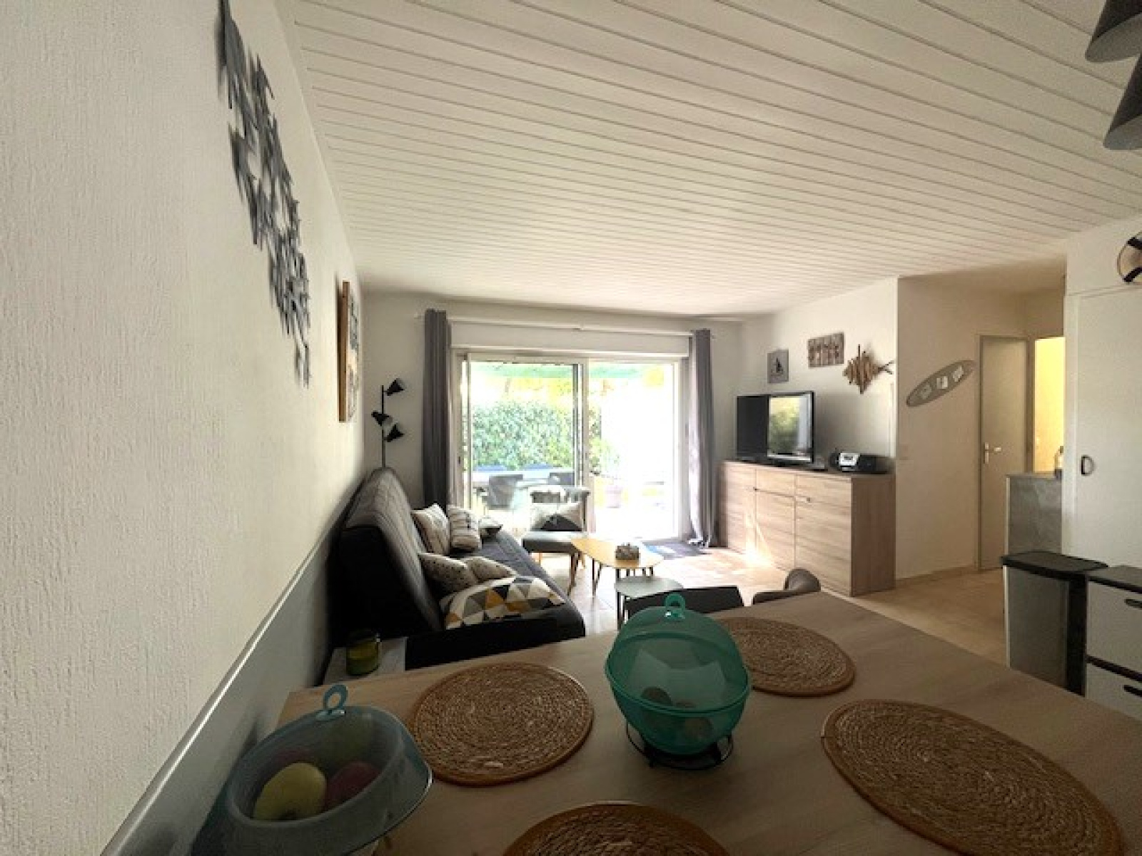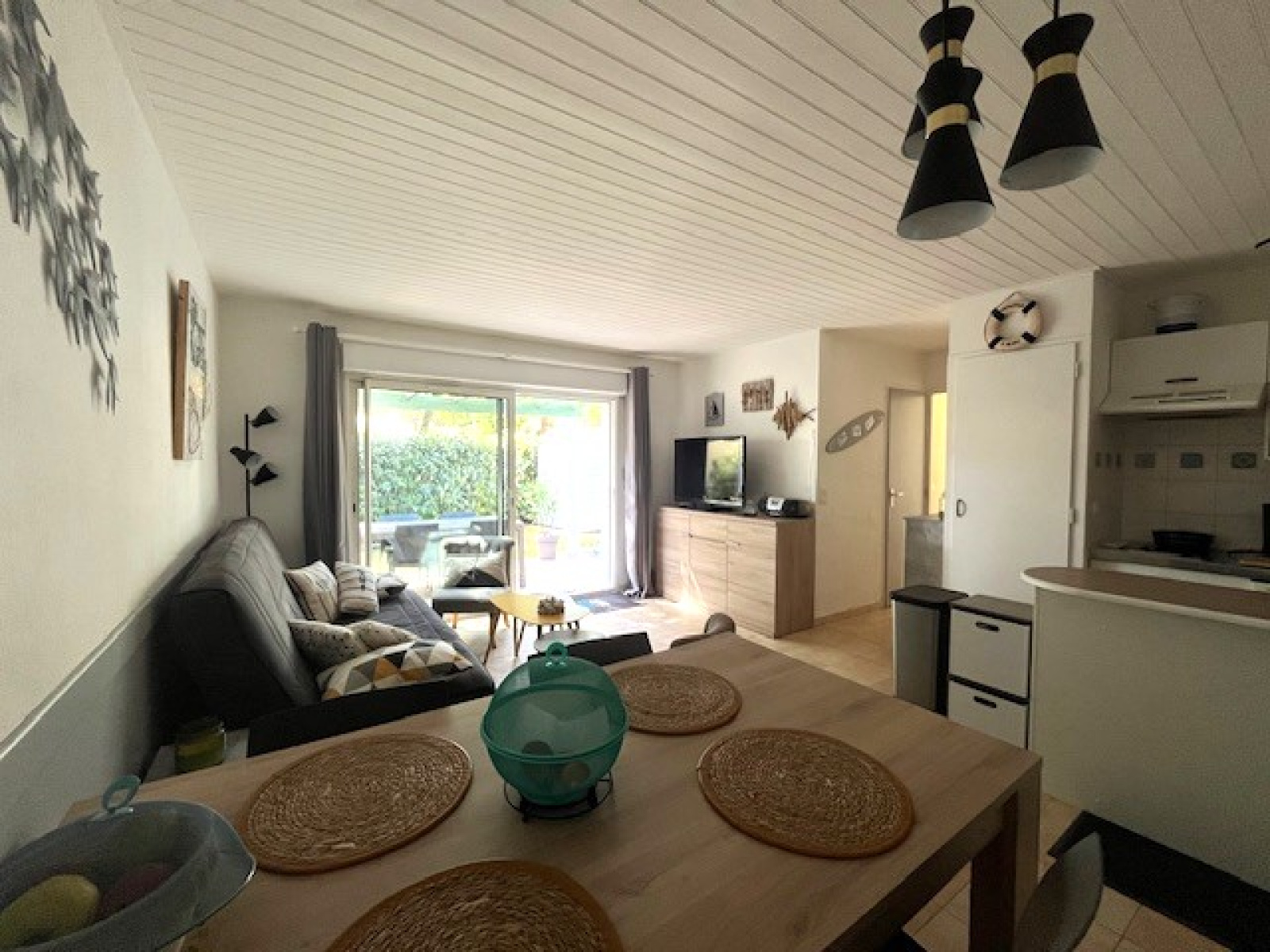 Charmant pavillon de plain pied de 46 m² composé d'une kitchenette, d'un séjour salon donnant sur une jolie terrasse privative avec cabanon de jardin, deux chambres, salle de bains et wc. Parking privatif. Située au sein d'une copropriété calme et de standing avec piscine collective. A visiter rapidement ! Côte et Mer, votre agence de proximité à Saint Jean de Monts