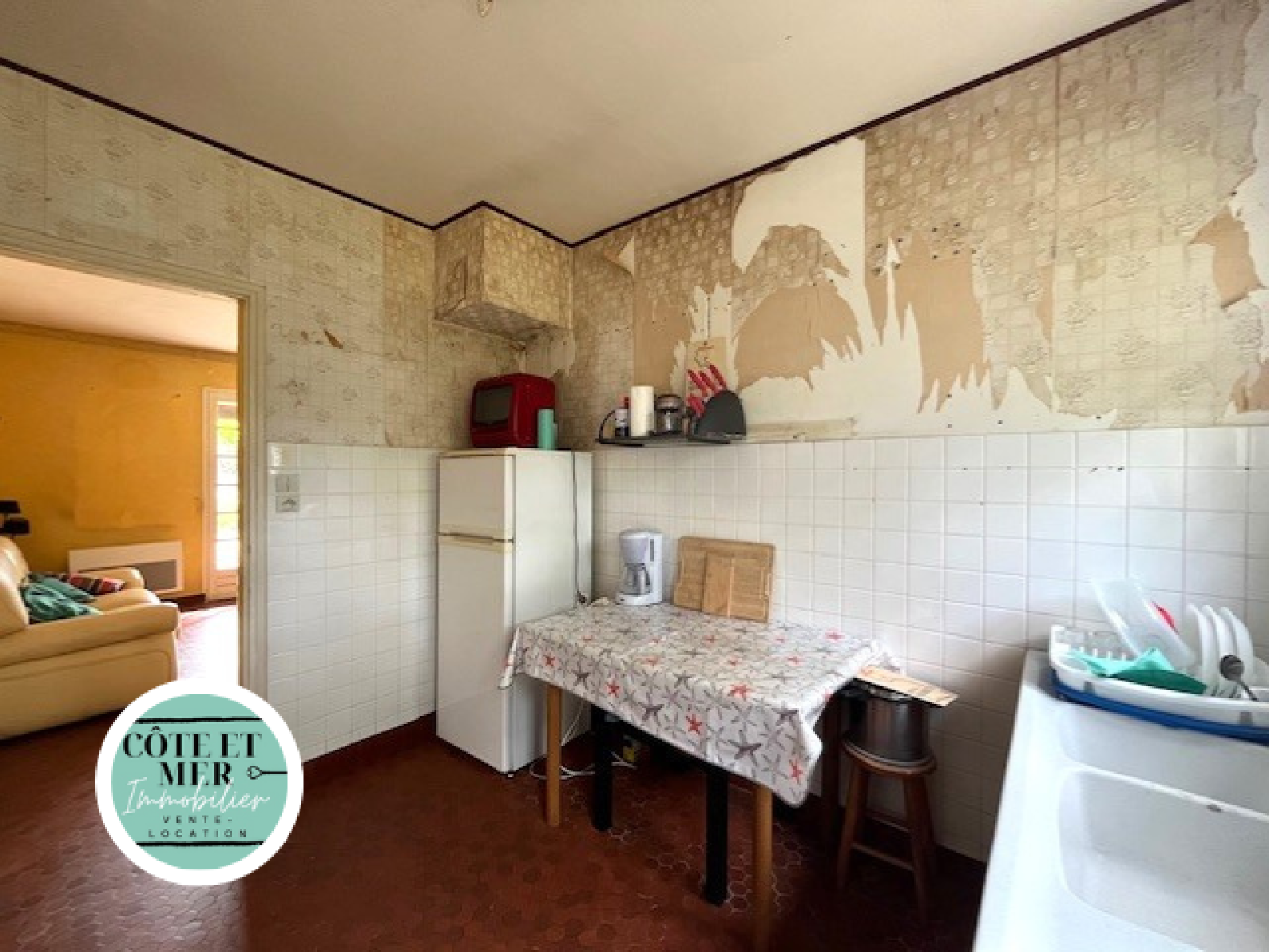 Charmante maison traditionnelle à rénover composée d'un séjour - salon, d'une cuisine séparée, de trois chambres, d'une salle de bains et d'un wc. Garage. Le tout sur 1608 m² de terrain boisé. Possibilité de division d'une parcelle de 720 m² constructible non viabilisée. Cu positif. Quartier résidentiel et prisé proche de la forêt domaniale à 3 kilomètres du centre et de la mer. Côte et Mer, votre agence de proximité à Saint Jean de Monts.