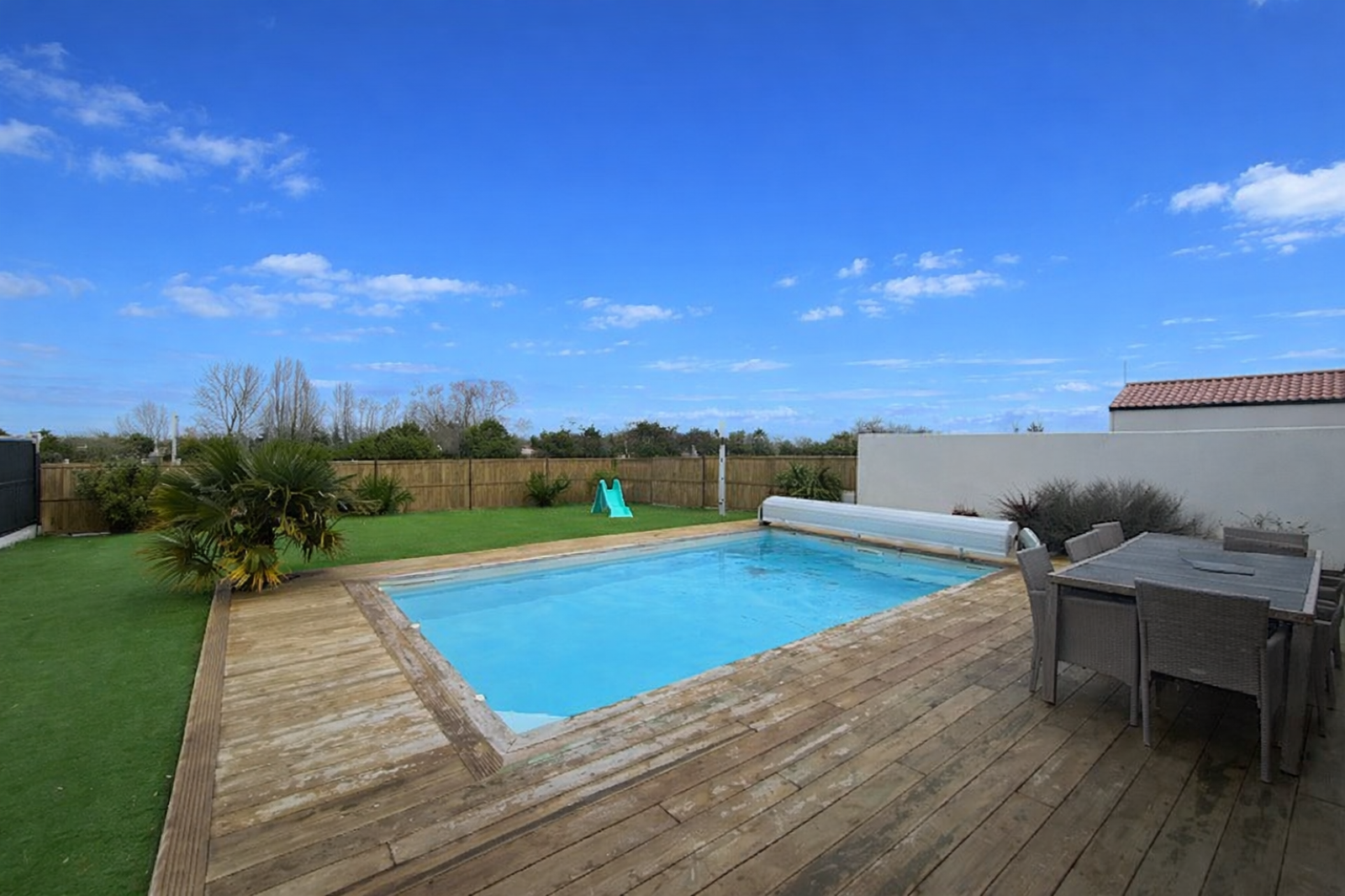 Très jolie maison édifiée en 2023 de 78 m² composée d'une cuisine équipée et aménagée donnant sur le séjour salon, cellier, trois chambres, deux salles d'eau et wc. Belle exposition de la terrasse arrière piscine. Lotissement calme à deux pas de la forêt domaniale et à trois kilomètres de la mer. A visiter rapidement ! Côte et Mer, votre agence de proximité à Saint Jean de Monts.