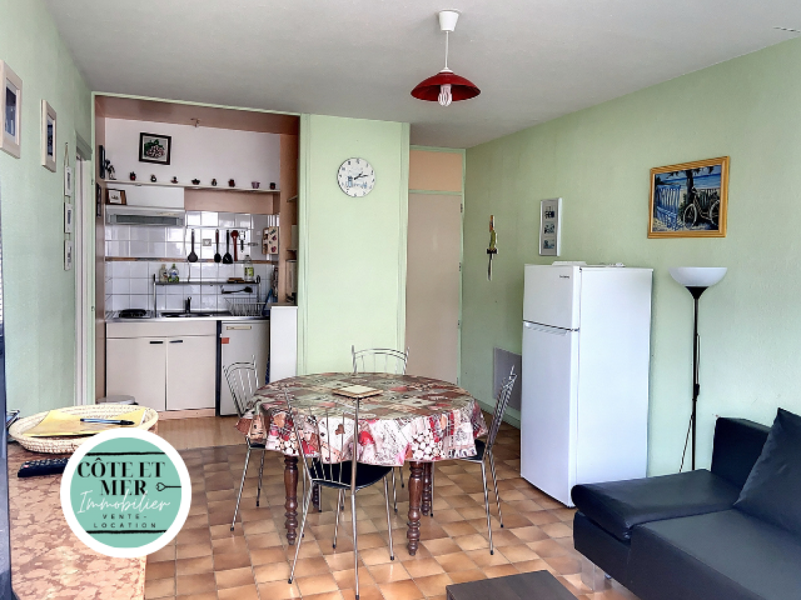 Village Les Marines à St Hilaire de Riez dans le prolongement de la plages des Demoiselles, appartement de type 2 situé au 1er étage (avec ascenseur) d'une résidence avec accès direct à la plage sans route à traverser offrant un séjour et une cuisine ouverte équipée, une chambre, un wc indépendant, un grand balcon loggia exposé sud. Cave et place de parking privative. Local vélo.