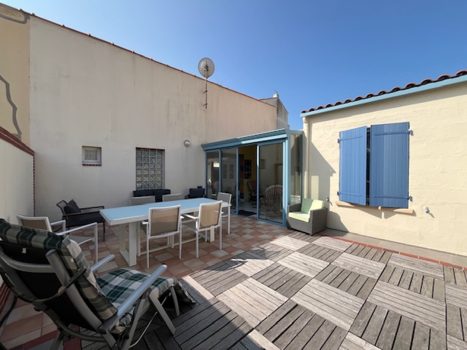 Pavillon de type 5 disposant d'un coin cuisine, une salle à manger et un salon, deux chambres en rez de chaussée, coin douche et salle d'eau, wc. Combles aménagés d'environ 30 m² avec deux chambres et débarras. Belles terrasses avant et arrière de 46 et 42 m². Place de parking et cabanon de rangement. Le tout sur 288 m² de terrain. Rare dans le secteur, il es situé dans une impasse privée débouchant directement sur l'esplanade de la mer dans le quartier des demoiselles. Côte et Mer, agence de proximité.